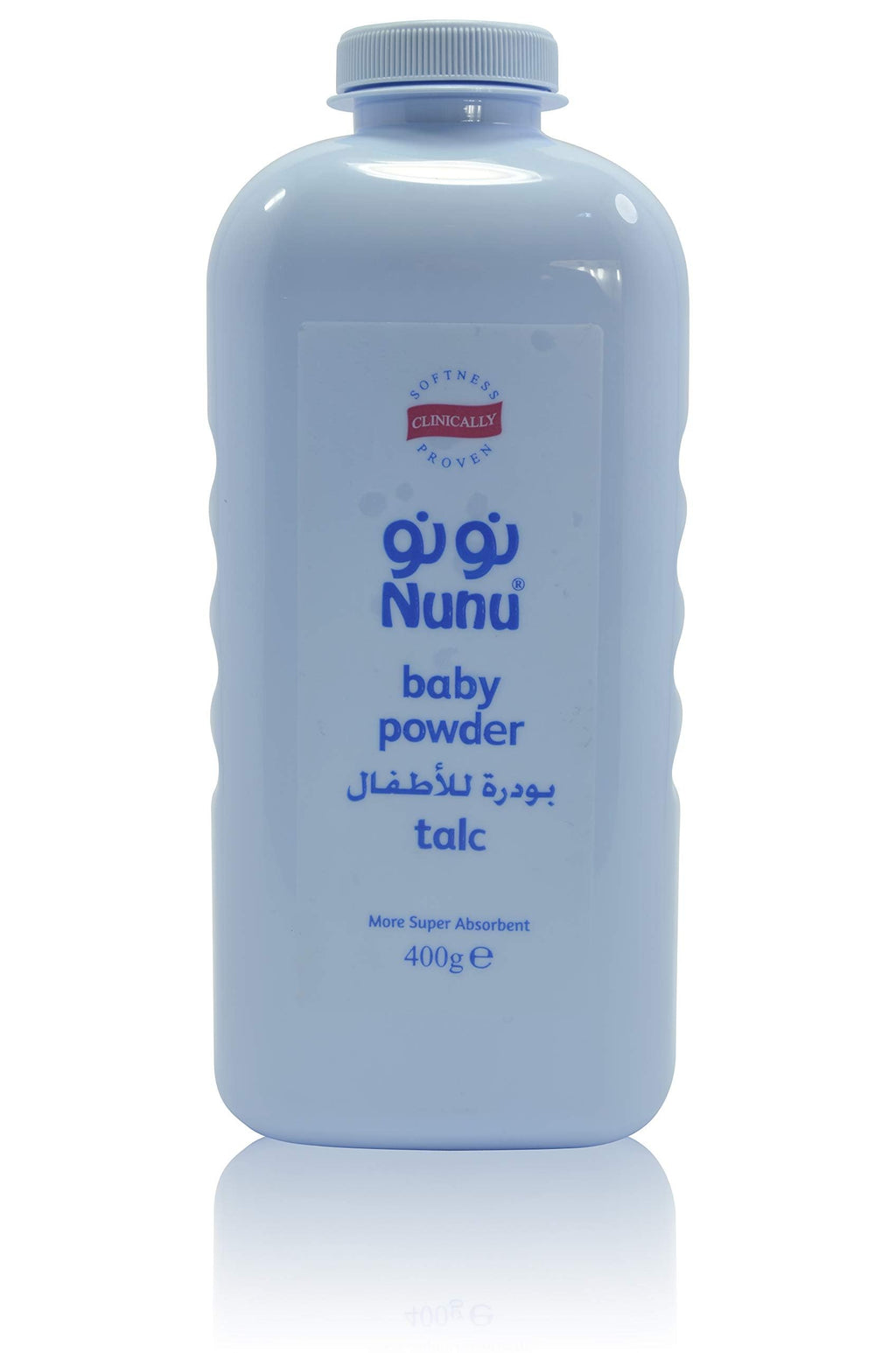 NUNU BABY POWDER 400GM BLUE is a gentle and soothing baby powder that helps to keep your baby's skin dry and comfortable. It has a pleasant fragrance and is suitable for daily use. This talc-free formula absorbs moisture and helps prevent diaper rash. The bottle is convenient to use and carry around.